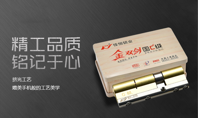 佳恒鎖業堅信產品創新是根本,為適應市場發展,2012年公司搶先研發生產雙面葉片防盜鎖芯,推出鐵盒包裝,一度掀起行業市場熱潮,同行競相模仿。緊接兩年公司陸續推出市場防掰斷尊貴型系列和升級款2.0佳恒雙劍金鑰匙系列。特殊的鎖芯結構、新穎的鑰匙外觀以及特有的包裝設計,贏得了客戶和業內的一致好評。